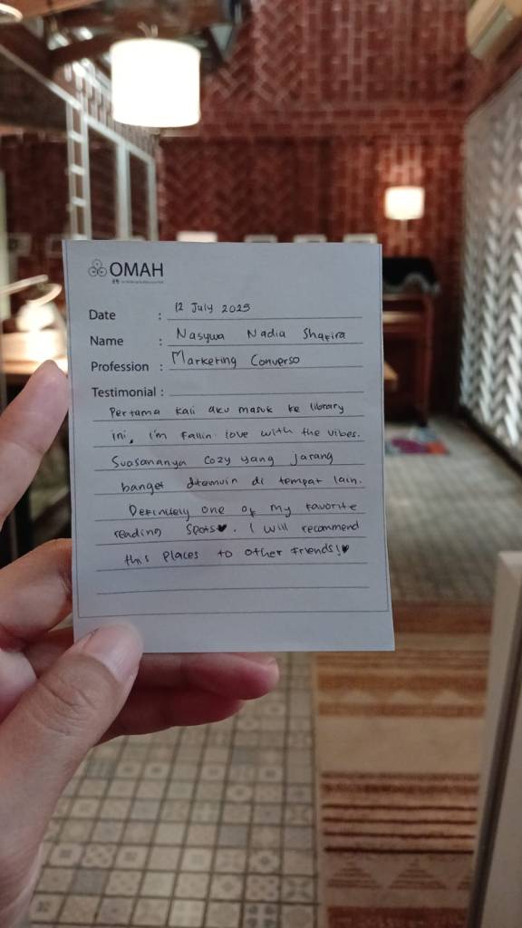 suasananya cozy yang jarang banget ditemuin di tempat lain . Definitely one of my Favorite reading spots. i will recommed this place to other friends!❤