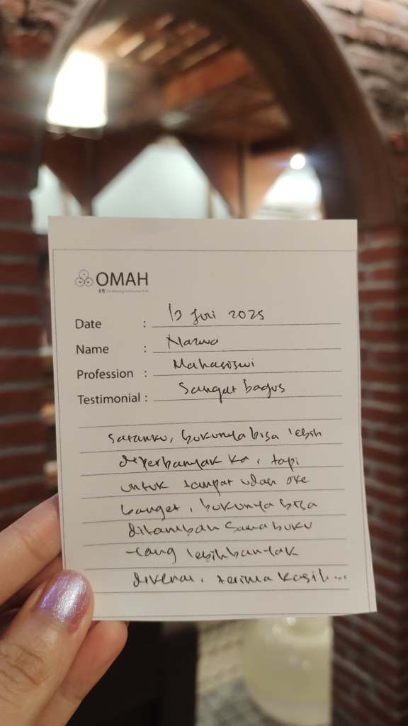 Senin, 6 Desember 2025 lalu, OMAH Library menerima kunjungan dari Kak Evi, yang sebelumnya sudah pernah datang ke GUHA. Kali…