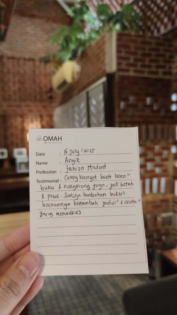 Comfy banget buat baca” buku & nongkrong juga, jadi betah & Pewe. Semoga tambahan buku” bacaannya bertambah judul” & Cerita” yang menarik ❤