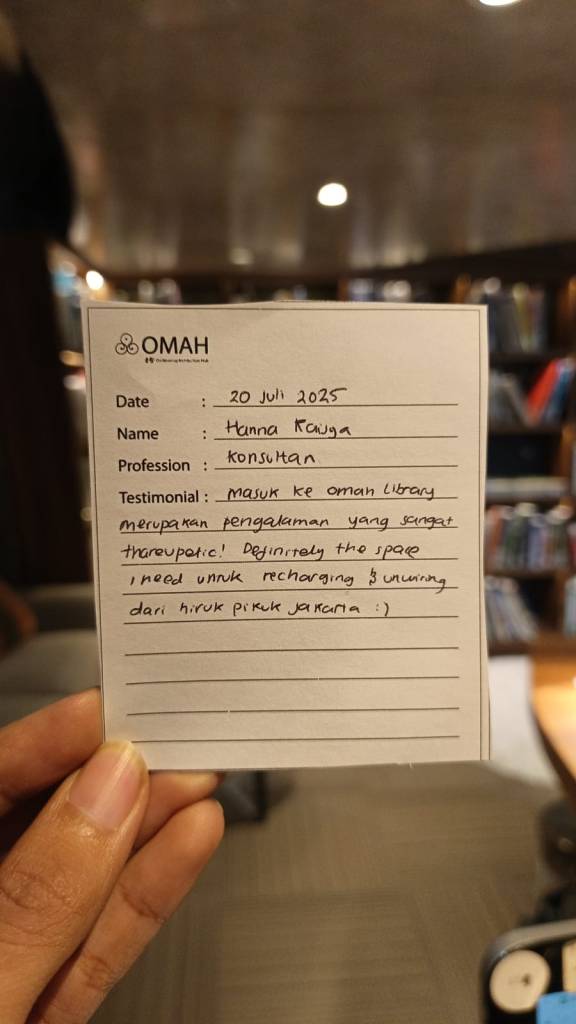 Masuk ke OMAH Library merupakan pengalaman yang sangat thareupetic! Definitely the space i need untuk recharging & unwiring dari hiruk pikuk Jakarta : )