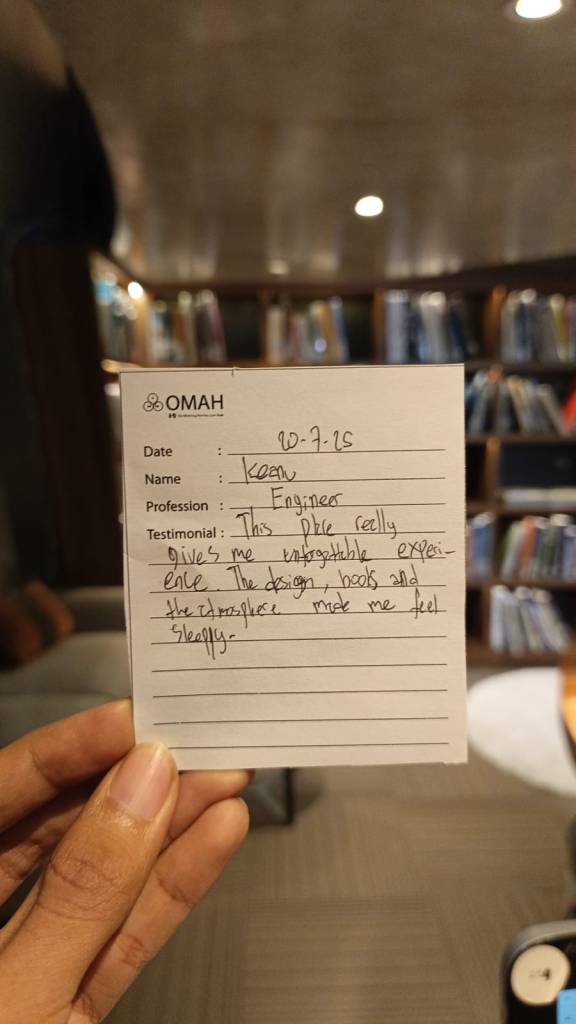This place really gives me unforgettable experience. The design, book and the atmosphare made me feel sleepy