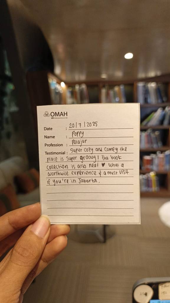 Super cozy and comfy the place is super groovy! the book collection is also neat❤ what a wortwile experience & must visit if you’re in Jakarta.
