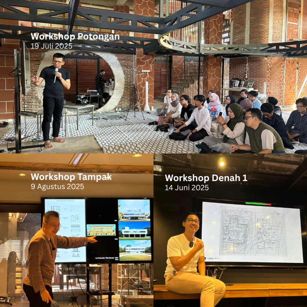 Dengan ini kami menutup seri pertama workshop tentang desain fundamental dan membuka seri selanjutnya dengan pendalaman inspirasi arsitektur yang tidak terhingga. Temanya dimulai dari membaca arsitektur bersama kak Nanda, menulis arsitektur bersama kak Cahyo, cerita arsitektur bersama Pak Budi Sukada, sampai ke kelas-kelas lainnya tentang bisnis/finansial dan humanisme, serta pemahaman urban desain juga rural. Untuk detail workshop selanjutnya bisa cek di bit.ly/KELASOMAH_2025