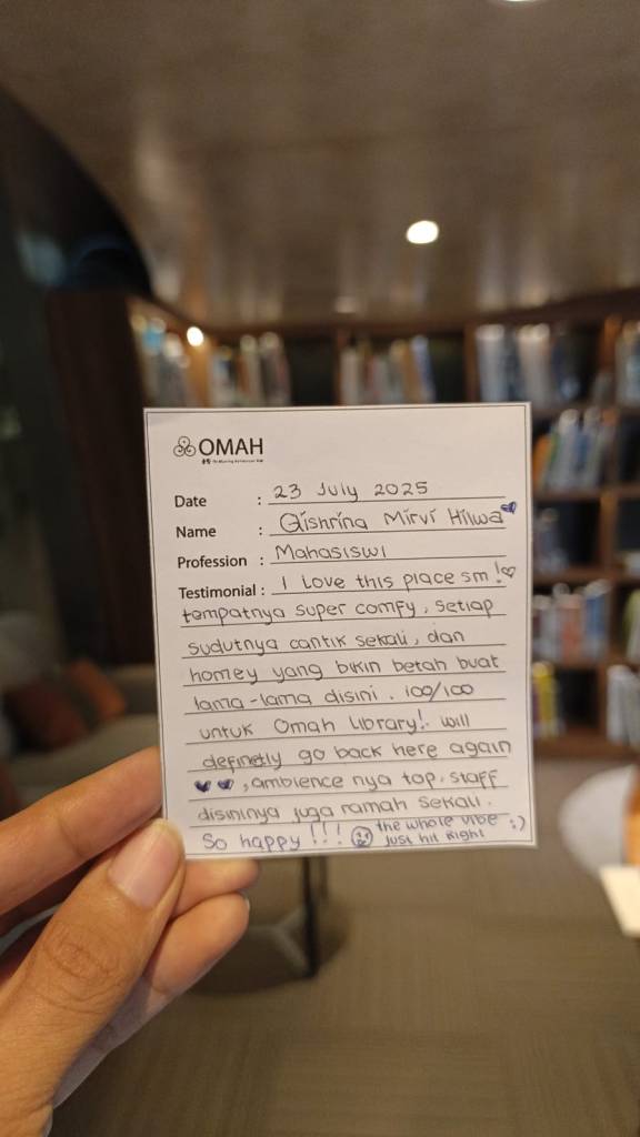 I love this space sm!❤ Tempatnya super Comfy, setiap sudutnya cantik sekali dan homey yang bikin betah buat lama-lama disini. 100/100 untuk Omah Library! will definetly go back here again ❤❤, ambiencenya top, staff disini juga ramah sekali. So Happy !!! 😁 The whole vibe just hit right ☺