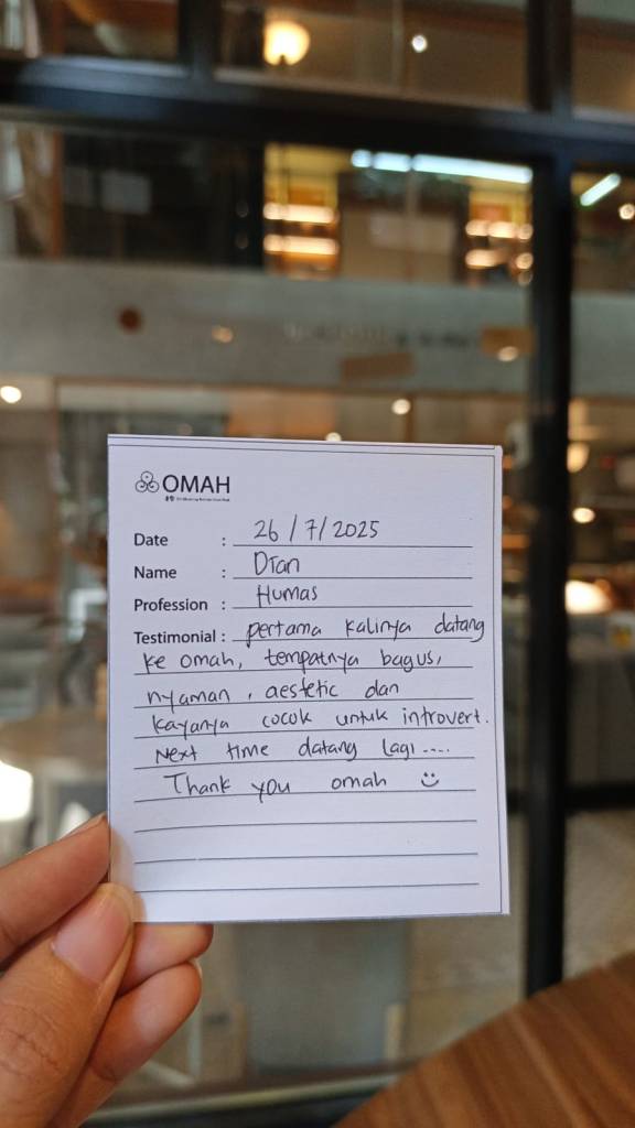 Pertama Kalinya datang ke Omah, tempatnya bagus, nyaman, aestetic dan kayanya cocok untuk introvert. Next time datang lagi…