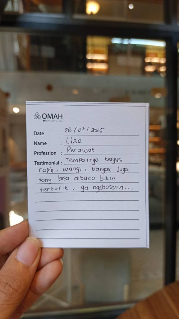 Tempatnya bagus rapih, wangi, banyak juga yang bisa dibaca bikin tertarik, ga ngebosenin…