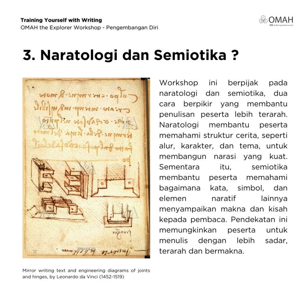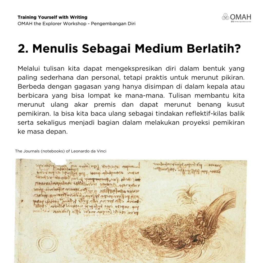 Bagi teman-teman yang tertarik dan ingin bergabung di sesi “Training Yourself with Writing”, bersama M. Cahyo Novianto. Daftarkan dirimu melalui bit.ly/KELASOMAH_2025 atau DM langsung ke akun OMAH Library