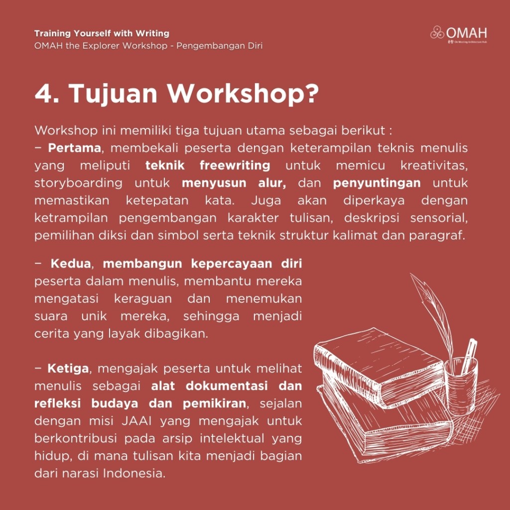 #OMAHTheExplorer #KelasOMAH #WorkshopOMAH #PengembanganDiri #Membaca #Menulis #Storytelling #LiterasiReflektif