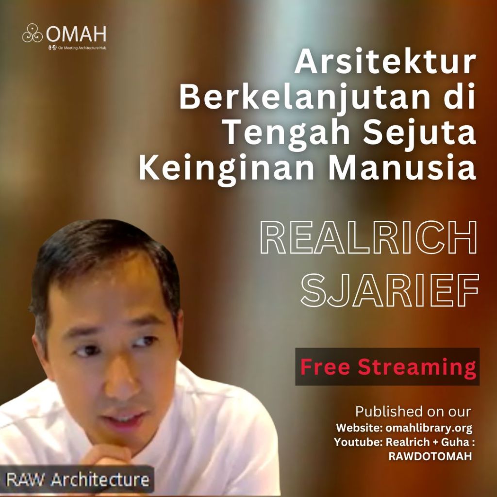 Hi Restless Spirit, rekaman video kelas kuliah pertama kami Kelas Arsitektur 01 – Arsitektur Berkelanjutan di Tengah Sejuta Keinginan Manusia, sudah bisa teman-teman akses melalui website OMAH Library dan Youtube Realrich + Guha : RAWDOTOMAH