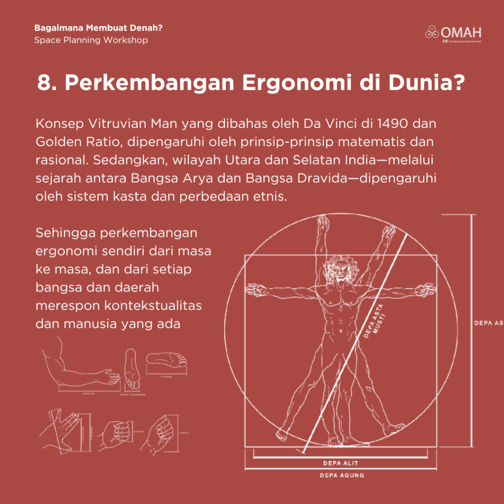 Selain itu, tubuh manusia menjadi ukuran utama dalam merancang ruang yang nyaman, melalui pendekatan ergonomi dan kesadaran spasial yang mendalam. Denah yang baik bukan hanya menyelesaikan kebutuhan hari ini, tapi juga memikirkan keberlanjutan dan potensi perubahan di masa depan. Denah hadir sebagai hasil dari proses mendengar, merespons, dan menyusun ruang dengan kesadaran penuh.