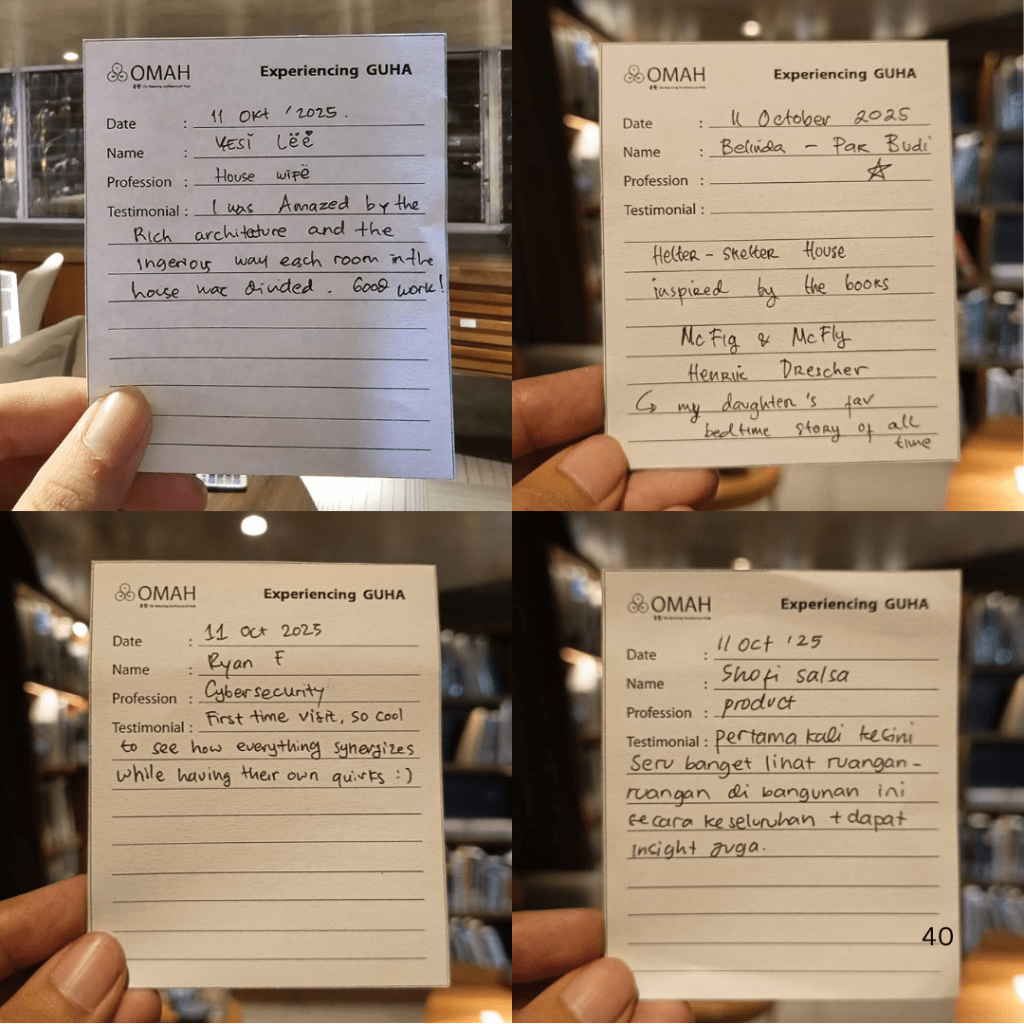 Sore itu menjadi pengingat bahwa arsitektur selalu hidup ketika disentuh oleh manusia. Di antara percakapan, tawa, dan langkah-langkah kecil, kami berharap setiap orang membawa pulang sesuatu yang bermanfaat atau sekadar perasaan hangat dari ruang yang tumbuh bersama kami semua.