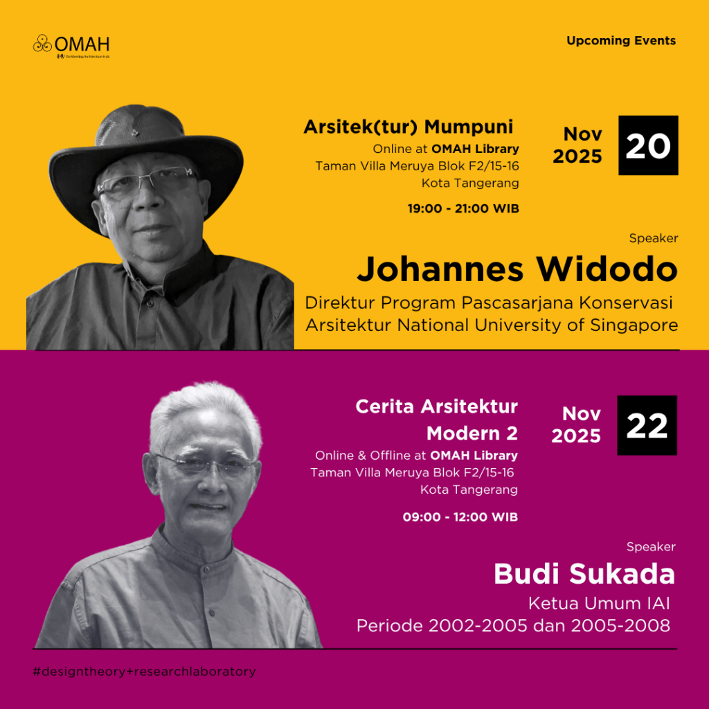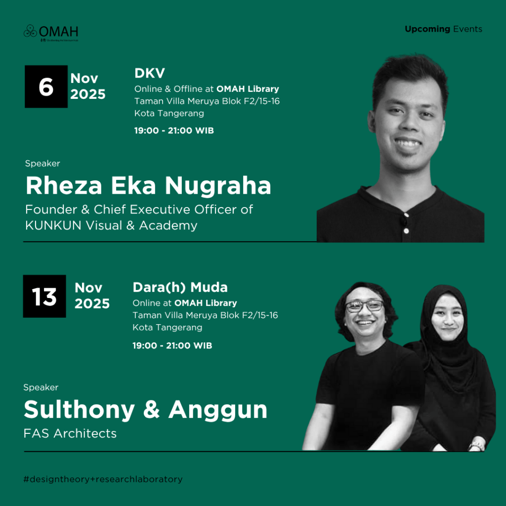 Saat ini, OMAH Library memiliki beberapa seri kelas seperti Darah Muda, Bittersweet Memories in Design Experience, Arsitektur Mumpuni dan berbagai series kelas lainny. berikut beberapa update untuk schedule event di OMAH Library.