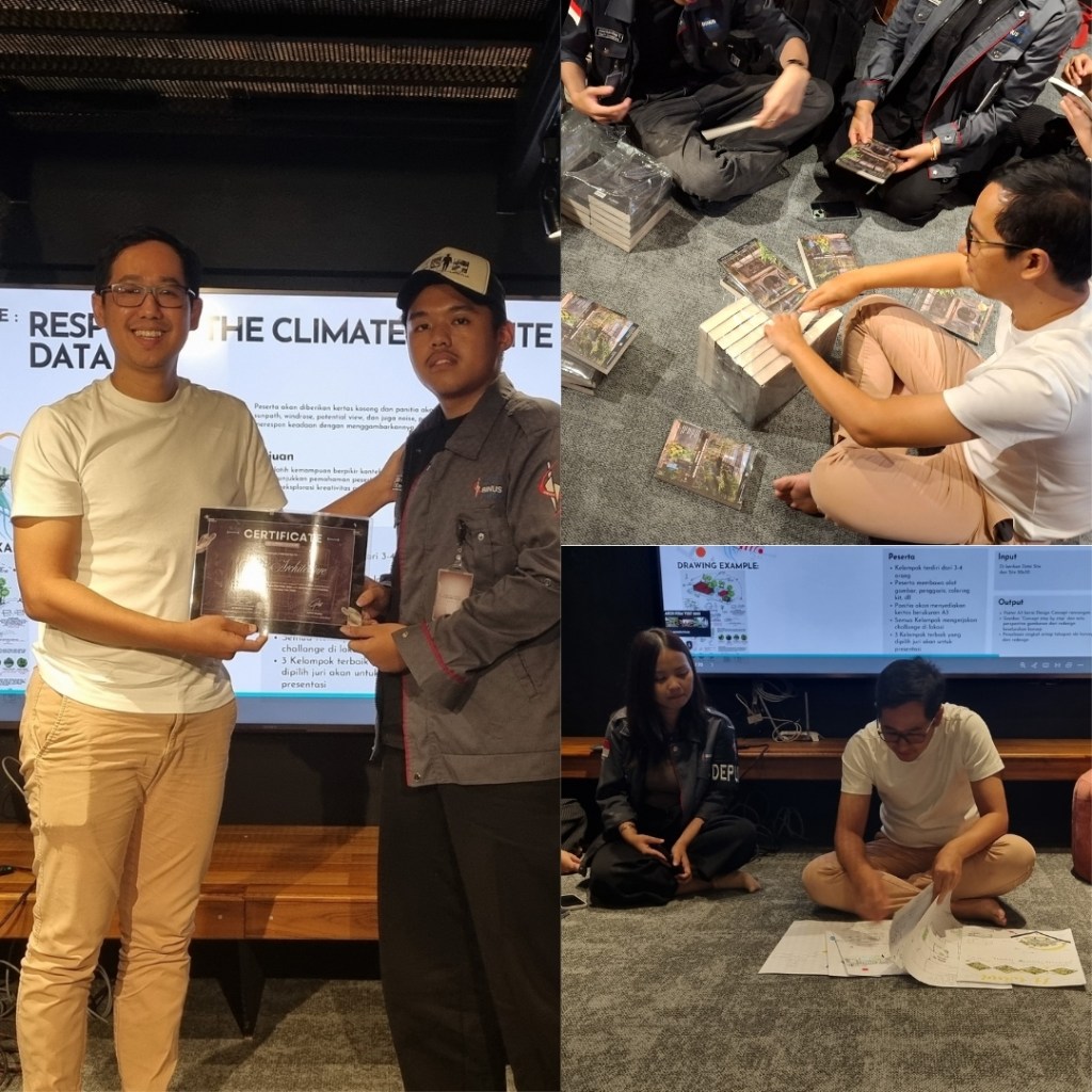 Menariknya, di akhir sesi mereka juga mengadakan workshop desain sederhana. Dalam kelompok kecil, mereka melakukan sketsa pada studi kasus dan tantangan desain yang diberikan. Hasilnya sangat beragam dan juga menarik, yang kemudian juga mendapatkan review langsung oleh Kak @rawarchitecture_best