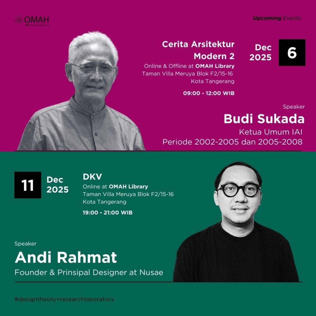 Saat ini, OMAH Library memiliki beberapa seri kelas seperti Darah Muda, Bittersweet Memories in Design Experience, DKV dan berbagai series kelas lainnya. Berikut beberapa update untuk schedule event di OMAH Library: