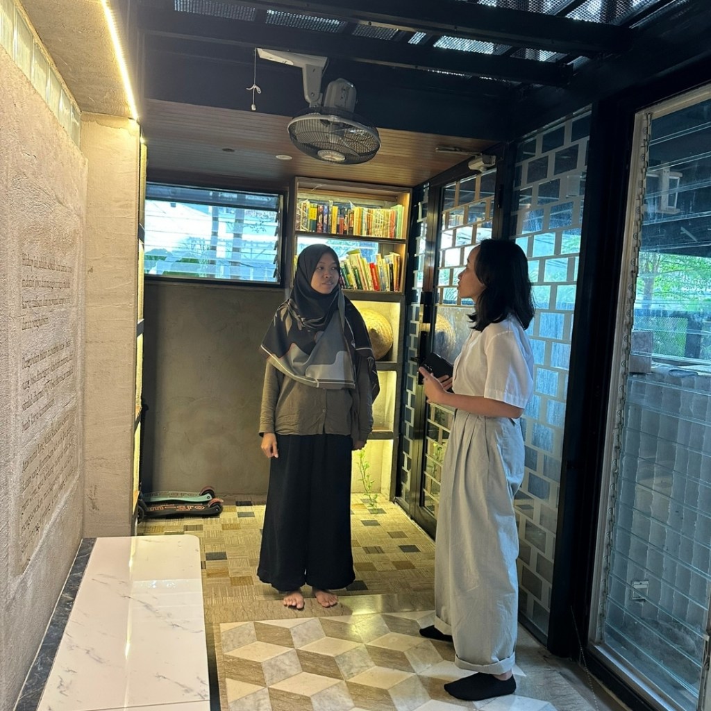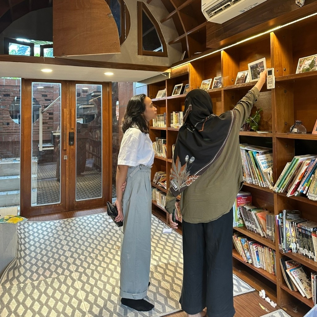 Selama menelusuri koleksi OMAH, kak Henna terlihat begitu excited—seperti menemukan ruang belajar yang akrab meski berada di negara berbeda. Dan dari pengalamannya, ia meninggalkan pesan yang sangat menyentuh: