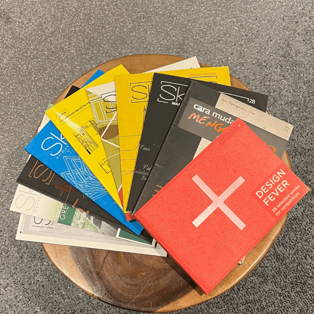 Koleksinya mencakup berbagai referensi arsitektur: buku sketsa, beragam majalah arsitektur, Design Fever, buku sumber konsep, Data Arsitek, Bentuk, Ruang, dan Tatanan, hingga buku-buku sejarah arsitektur.