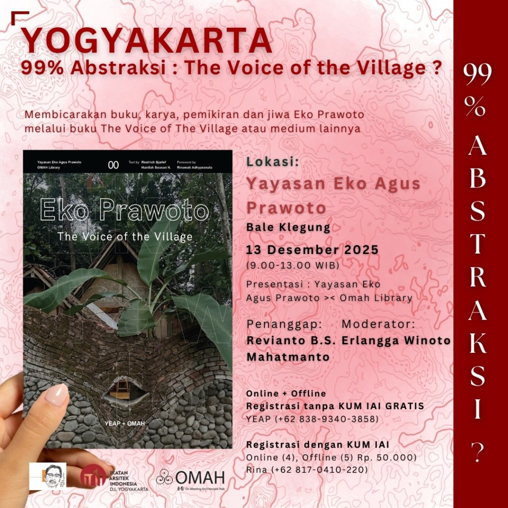 OMAH Library dan Yayasan Eko Agus Prawoto hendak mengadakan bedah buku – abstraksi – mini simposium yang bertajuk “Abstraksi: Voice of Village” bersama-sama secara Online dan Offline di