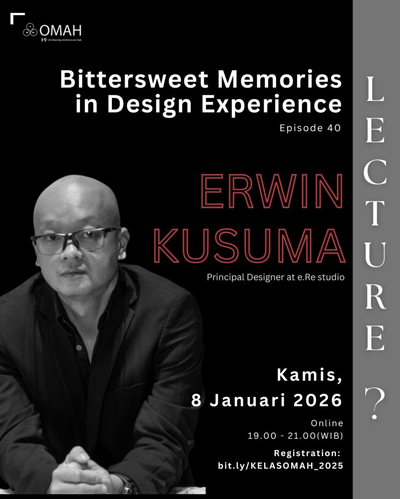 Kini, dalam episode ke-40 Bittersweet Memories in Design Experience, Erwin Kusuma akan berbagi kisah perjalanannya dalam diskusi bersama di OMAH Library.