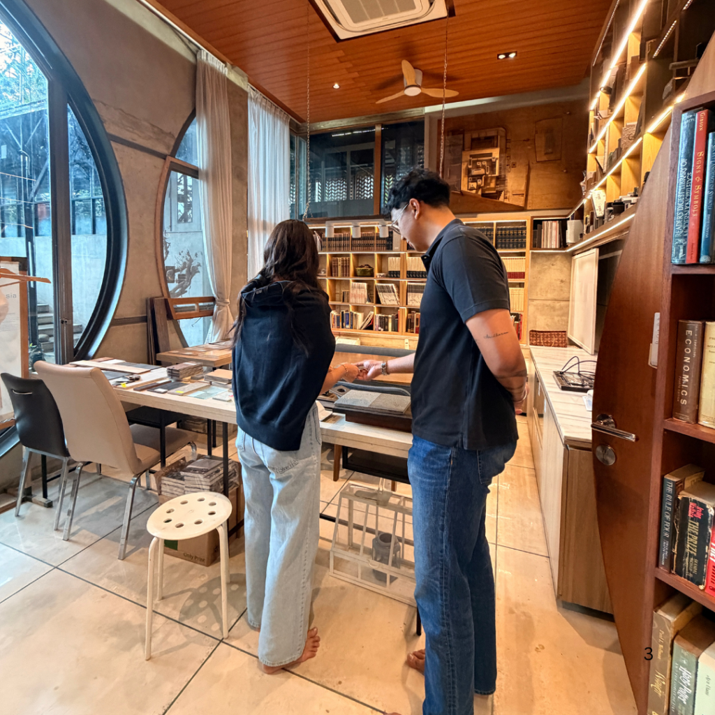 Tentang keinginan memiliki rumah suatu hari nanti—rumah yang dibangun oleh orang-orang dengan cara berpikir yang sejalan, yang tidak hanya memikirkan hasil akhir, tetapi juga manusia yang terlibat di dalam prosesnya. Percakapan itu terasa personal, sekaligus dekat. Keduanya juga terlihat menikmati bagaimana ruang bersentuhan dengan alam—tanaman yang tumbuh, cahaya yang masuk perlahan, dan suasana yang membuat langkah melambat. Ruang demi ruang menjadi tempat untuk melihat, merasakan, sekaligus merenung.