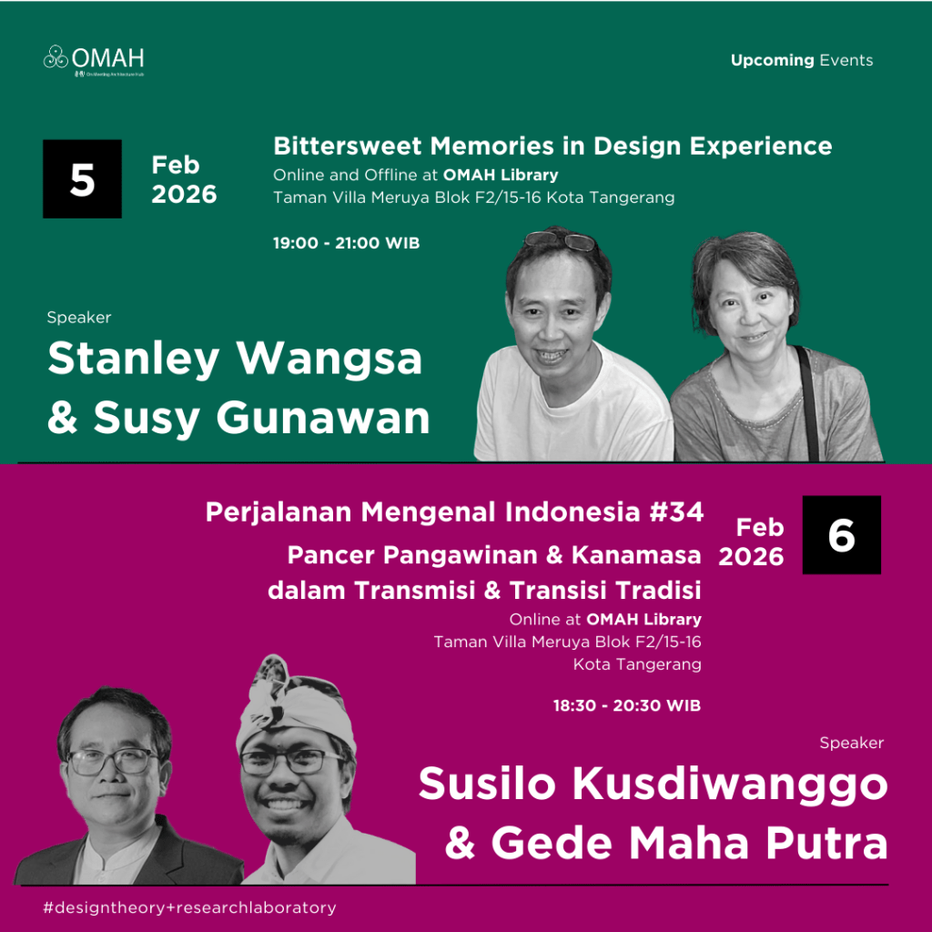 Saat ini, OMAH Library memiliki beberapa seri kelas seperti Bittersweet Memories in Design Experience, Perjalanan Mengenal Indonesia dan berbagai series kelas lainnya. Berikut update untuk schedule event di OMAH Library