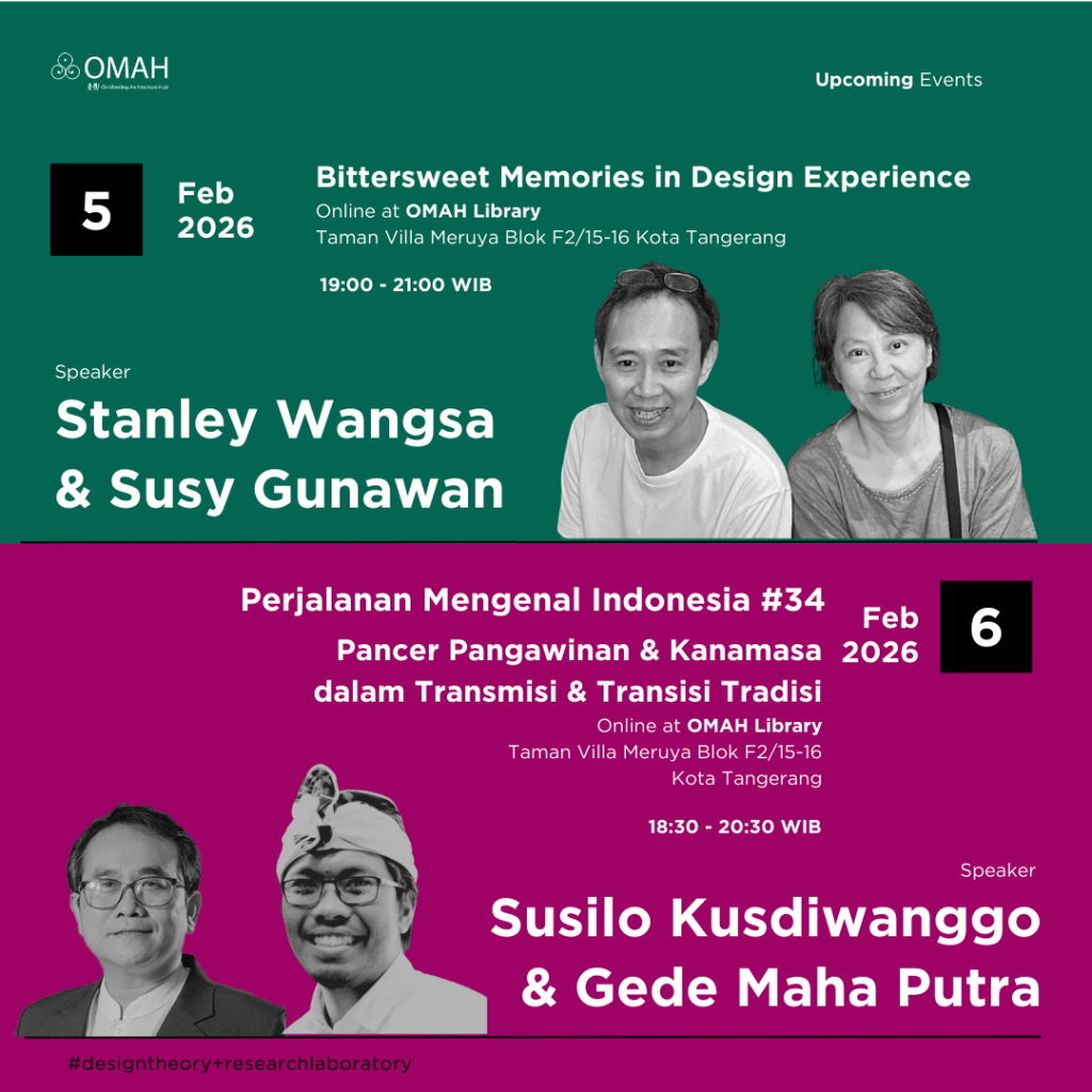 Saat ini, OMAH Library memiliki beberapa seri kelas seperti Bittersweet Memories in Design Experience, Perjalanan Mengenal Indonesia dan berbagai series kelas lainnya. Berikut update untuk schedule event di OMAH Library