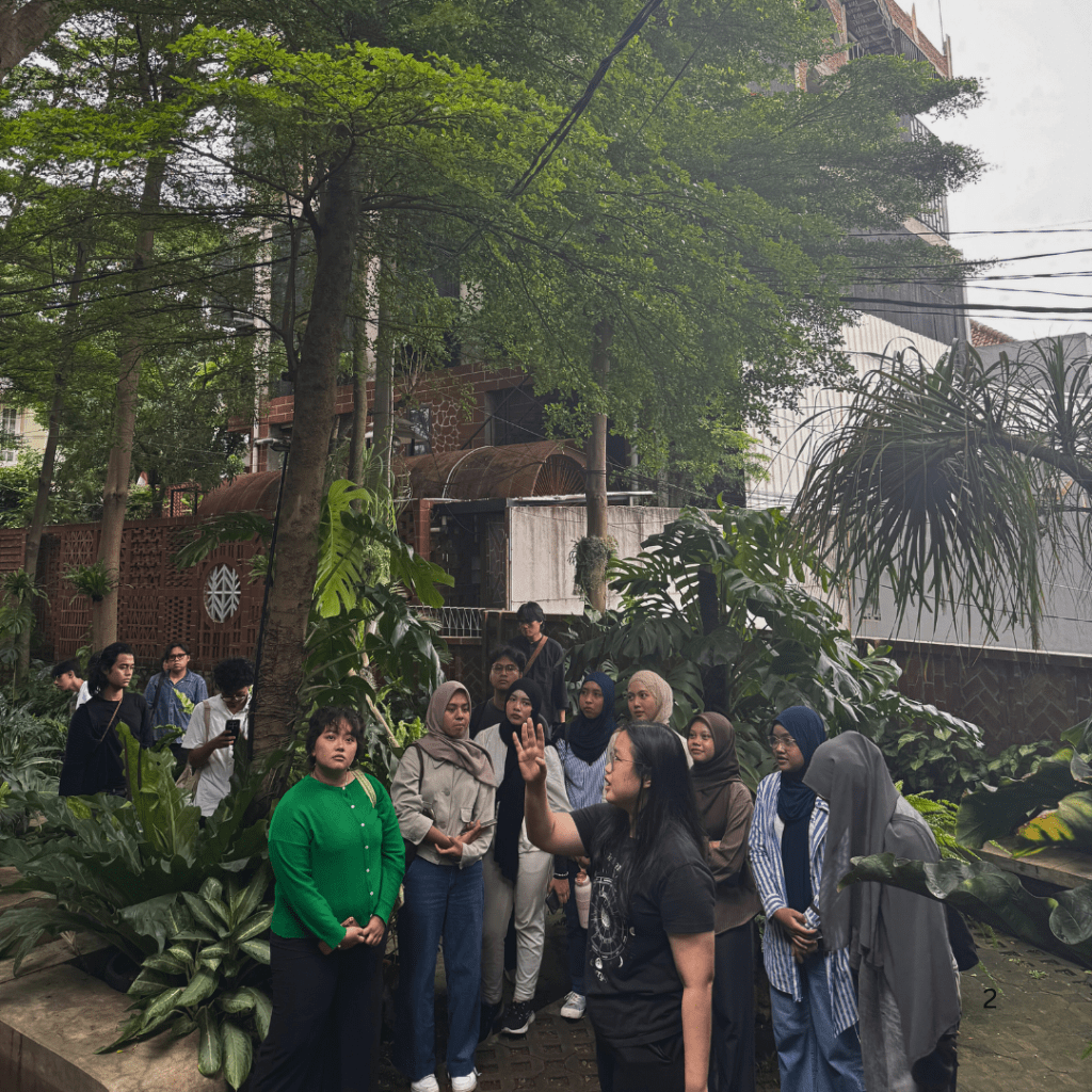 Kunjungan ini juga berlangsung bersama Kak Tegar @azeiba, principal dari Ruangan Asa dan kontributor OMAH Library. Sepanjang perjalanan, teman-teman tampak antusias bertanya dan berbagi kesan tentang ruang-ruang yang mereka alami—mulai dari tata ruang, atmosfer yang berbeda di setiap area, hingga bagaimana Guha terus berkembang seiring waktu.