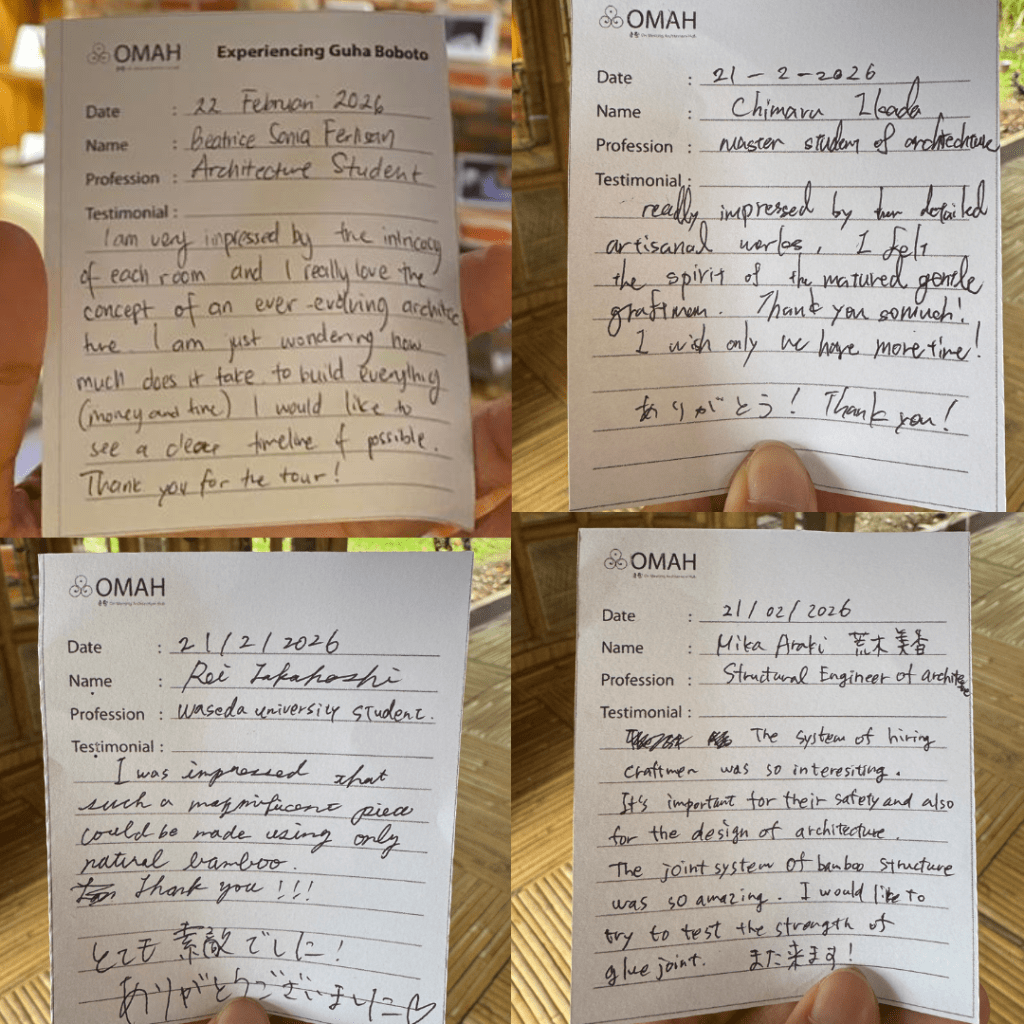 At the end, they shared reflections on the richness of detail, the strength of an evolving architectural concept, and a deep respect for process and craftsmanship. They recognized how materials such as bamboo can form structures that are both strong and beautiful, how joint systems become integral to design, and how open spaces foster close relationships with nature.