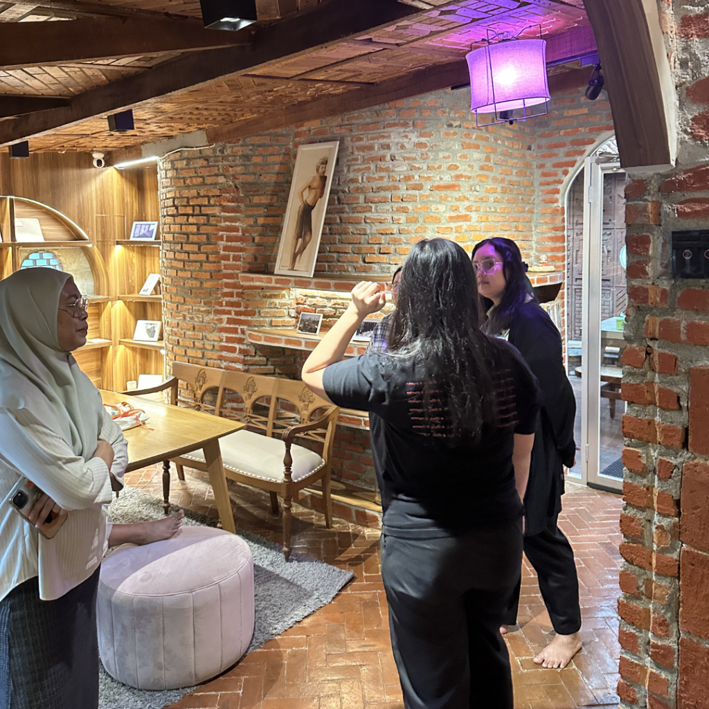 Mereka menyusuri ruang dengan perlahan—mengamati, membaca, dan merasakan suasana yang hadir. Ada ketertarikan pada bagaimana ruang ini terasa dekat dengan keseharian, sekaligus memberi pengalaman yang berbeda.