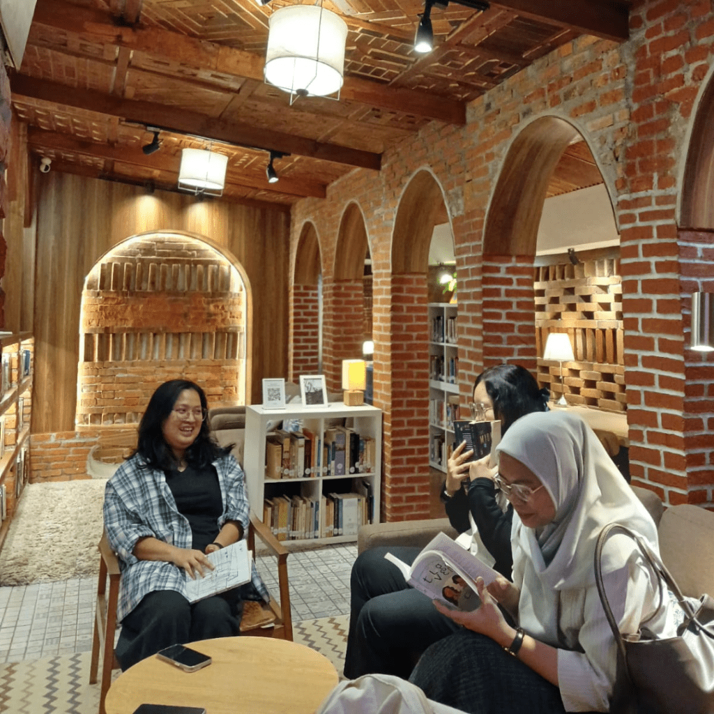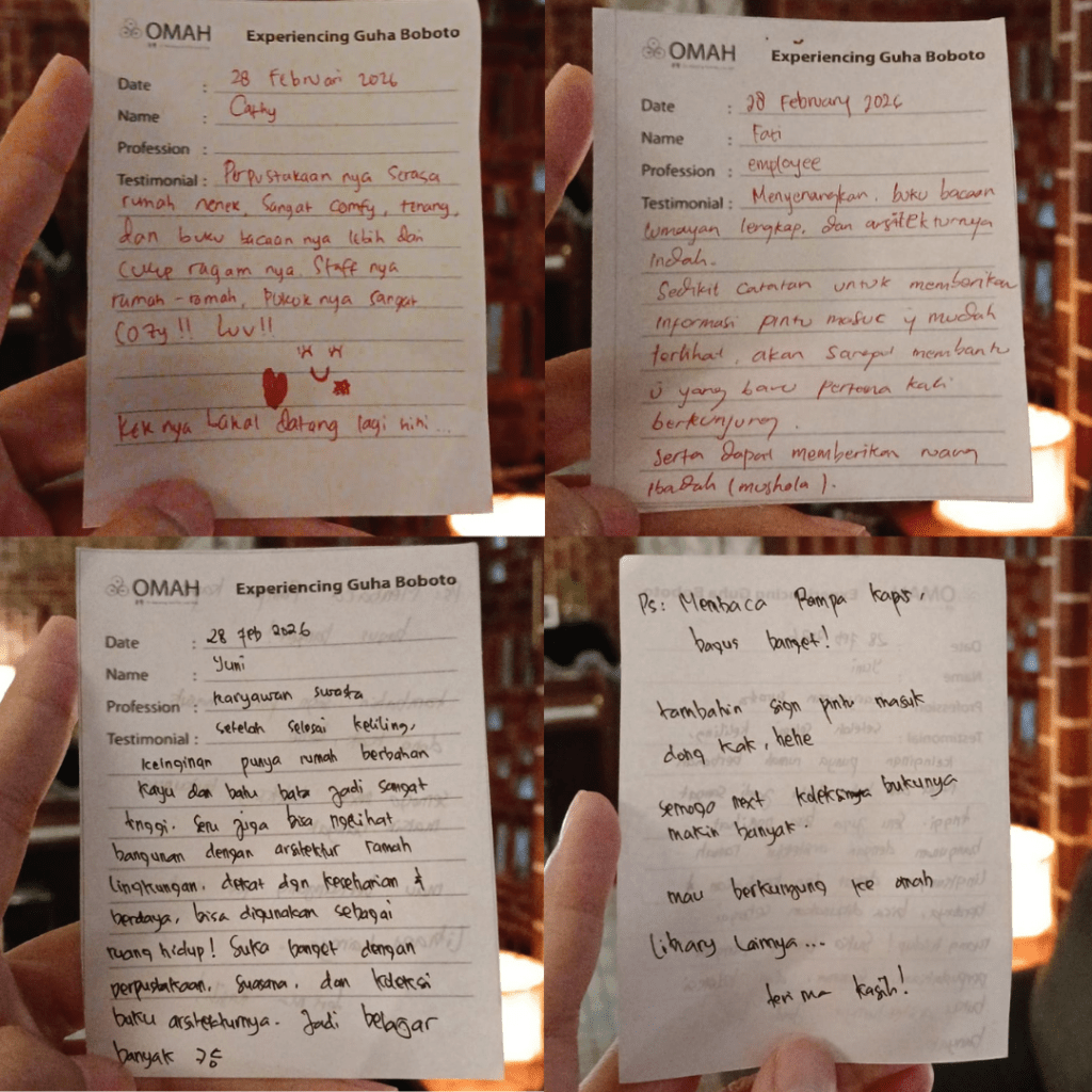 Beberapa waktu lalu, kami menyambut tiga teman kami, Kak Cathy, Kak Fati, dan Kak Yuni untuk experiencing di Guha Boboto. Kunjungan ini menjadi pengalaman pertama mereka ke OMAH Library. Pilihan mereka jatuh pada Guha Boboto—karena menurut mereka, ada sesuatu yang unik dan berbeda, dari rasa itu tumbuh keinginan untuk melihat langsung cerita di balik ruang ini.