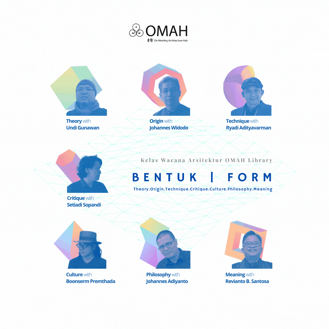 Webinar Omah library yang berjudul “Form | Rahasia dibalik sebuah bentuk” membahas bentuk dari sudut pandang teori arsitektur, asal mula (origin), teknik merangkai bentuk, kritik terhadap bentuk, metode desain sekaligus konteks alam dan budaya, filosofi dan pemaknaan. Berbagai sudut pandang ini memberikan peta bagaimana perjalanan sesorang menelusuri perjalanan proses membentuk bentuk. Beberapa pembicara yang akan mengisi acara ini adalah Undi Gunawan, Johannes Widodo, Ryadi Adityavarman, Boonserm Premthada, Johannes Adiyanto, dan Revianto Budi Santosa.