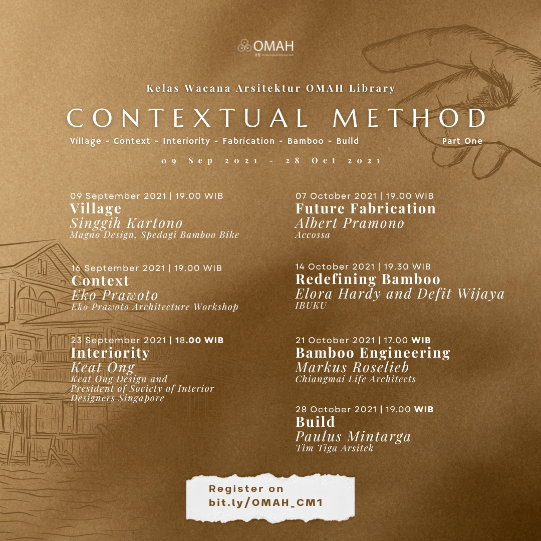 Omah Library dengan bangga mengadakan Webinar “Contextual Method / Metode Kontekstual” yang membahas desain dari sudut pandang latar konteks dan metode desain dari panelis-panelis yang memiliki pengalaman khusus yang telah mereka pupuk hingga sekarang. Injecting Architecture adalah metodologi desain yang berguna untuk mengekstraksi kualitas tiga dimensional dari suatu ruangan. Memungkinkan…