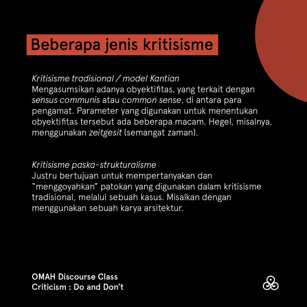 Apakah kritisisme itu? Apakah kegunaannya dalam arsitektur? Bagaimana kita melakukan kritik yang baik? Adakah parameter yang jelas untuk menilai sesuatu?