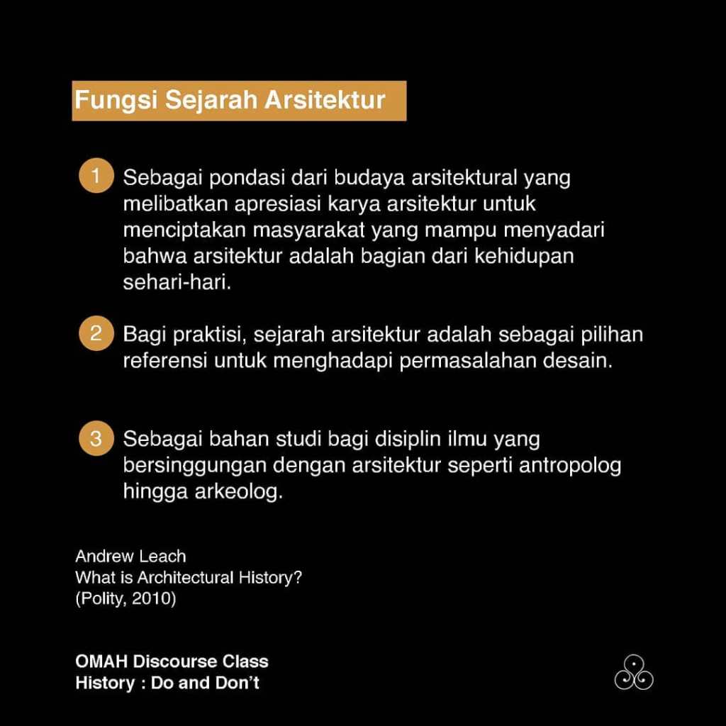 Paparan ini akan mencoba mendiskusikan definisi dan peran “sejarah arsitektur” bagi para arsitek dan akademisi arsitektur di Indonesia, dan bagaimana sempitnya definisi itu telah menyebabkan kekeliruan epistemologis di dalam arsitektur sebagai sebuah disiplin dan profesi kreatif.