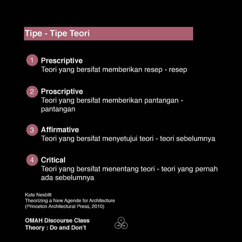 Jawaban Anda akan didiskusikan pada pertemuan ini. Hal-hal pokok mengenai arsitektur akan dibenturkan dengan sudut pandang-sudut pandang sebuah entitas yang diberi nama t.e.o.r.i , sebuah aktivitas memandang, yang melahirkan pengetahuan atau sekedar cara kita merasakan keindahan.